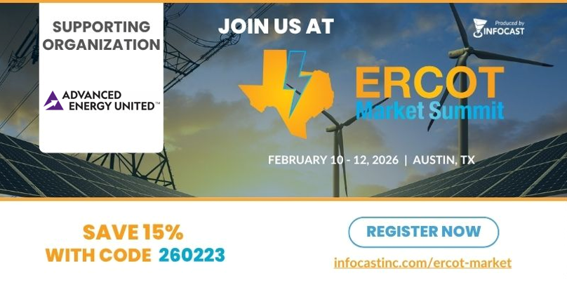 Infocast’s 2026 ERCOT Market Summit will provide a deep dive into how clean energy developers are adjusting their strategies in the face of federal headwinds, the impacts of regulatory and market rule changes on grid reliability, and load forecasting for new AI data centers and large flexible loads. Join TAEBA’s Matthew Boms on the first day of the event for the “Data Centers and Other Large Loads in ERCOT: Meeting Interconnection, Grid Integration, and Reliability Needs” panel. Connect with us at ERCOT Market Summit.>